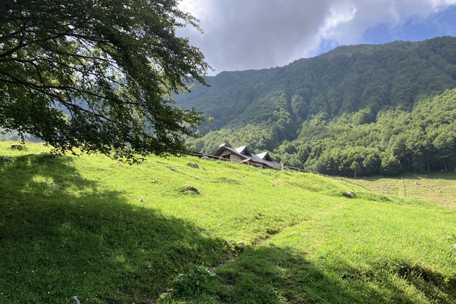 Pri ostankih planšarije na planini Casera Nische Sentiero 731 zavije levo v smeri sedla Krnica, mi pa pot nadaljujemo po Sentiero 734, desno proti dolini reke Rezije. Oziroma po modro obarvanem »Casera Nische - Ta na Provalo - Oseacco« trailu. Šest kilometrov in skoraj devetstopetdeset višincev! Pa pojdimo po vrsti. Prvih nekaj sto metrov se komaj opazno vzpenjamo, ko pa pridemo globlje v gozd, se začnemo spuščati po ozki in precej izpostavljeni stezi. Na srečo je steza položna tako da brez težav pridemo do serpentin, kjer bodo resnično uživali le tisti z izpiljeno tehniko »front-pivot«. Serpentin sicer nismo šteli, so pa položne in varne. Če komu kaj pomeni – na poldrugem kilometru in slabih tristo višincih nas pripeljejo do idilične, obnovljene planšarije Provalo (995 mnv), kjer s slikovitega travnika uživamo v razgledih tako na okoliške hribe, kot tudi na rezijanske vasi v dolini. Prečenje travnika in prvih nekaj sto metrov spusta po gozdu je za učbenike, ko pa pridemo do soteske potoka Rio Potoch, vožnja ni več popolnoma samoumevna. Zaradi nemogoče podlage, delno pa tudi zaradi utrujenosti, smo na nekaj mestih raje sestopili s kolesa. Ko pridemo do lesene brvi čez Rio Potoch je težav konec. Le nekaj sto metrov naprej se steza prelevi v gozdno cesto, ki nas pripelje v vas Osojane (Oseacco, 506 mnv). Pri pokopališču, potem ko smo že prevozili Osojane, smo zavili levo na kolovoz, po katerem poteka »Ta Stara Pot« proti vasi Njiva (Gniva), od koder smo se spustili do mosta čez potok Rezija.