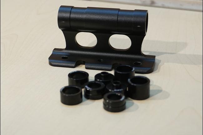 Nosilce za vpenjanje vilic (fork mount) je za razumen denar moč kupiti v kompletu z nastavki za različne standarde osi sprednjega obročnika (premer x razdalja med »dropoutoma«):