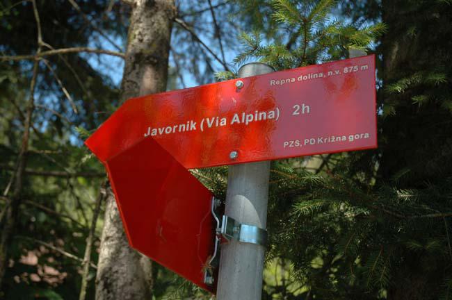 Na bolj položnem delu se peljemo mimo gostišča Stara Pošta v Hrušici. Po dobrih petnajstih kilometrih vožnje, na mestu, kjer se cesta nepričakovano razširi, opazimo smerokaz za pešpot na Javornik, via Alpina. Takoj za hišo zavijemo na makadam ostro desno in navkreber. Na naslednjem križišču sledimo oznakam za Pirnatovo kočo na Javorniku. Od odcepa pa do vrha je dobrih pet kilometrov in pol, ne pretirano strmega vzpona. Tik pod vrhom se cesta razcepi. Kdor želi priti do žiga, naj nadaljuje po levem kraku, ki (sprva malce navzdol) vodi do Pirnatove koče (1156m). Na vrh Javornika (1242 m) se od tu lahko povzpnemo peš.
