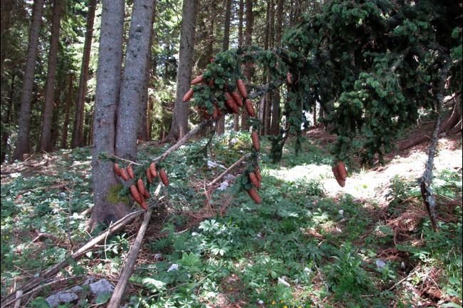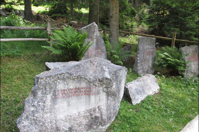Leva cesta gre proti Vodiški planini, desna pa proti gozdarskim kočam Martinček. Zavijemo desno, a že čez nekaj sto metrov pridemo do novega razcepa. Glavna gozdna cesta proti razcepu Martinček se nadaljuje naravnost, mi pa zavijemo ostro levo v hrib. Cesta kmalu zavije desno in teče bolj kot ne vzporedno s spodnjo proti Martinčku. Po lepi cesti vozimo dober kilometer, dokler se cesta sredi poseke ne konča. Od tu naprej nadaljujemo po kamniti vlaki. Pogled na pokrajimo je tu precej žalosten. Najverjetneje zaradi vremenskih ujm je tu od gozda ostalo le še nekaj osamelih dreves. Po vlaki pridemo do gozdne ceste, tik pred spomenikom NOB, kjer se držimo levo. Ta cesta od razpotja Martinček vodi proti Lipniški planini. Na naslednjem razpotju, čez približno pol kilometra, vozimo naravnost in mimo manjšega kamnoloma. Čez nekaj trenutkov se že znajdemo na Lipniški planini. Na levi strani si ob kolovozu ogledamo spomenike NOB. Ob zgornjem robu planine se nahaja malce večja koča. Po levem kolovozu nadaljujemo z vožnjo, precej strmo proti gozdu. Na manjši izravnavi se držimo kolovoza desno. Kolovoz se pod vrhom nadaljuje, mi pa se po praktično neshojenem terenu dvignemo še nekaj deset metrov do Partizanskega vrha (1411m). To je sicer najvišja točka Jelovice, a nikar ne pričakujte preveč. Vrh je namreč poraščen, razgledov ni nobenih, tudi obiski očitno tu niso ravno pogosti.