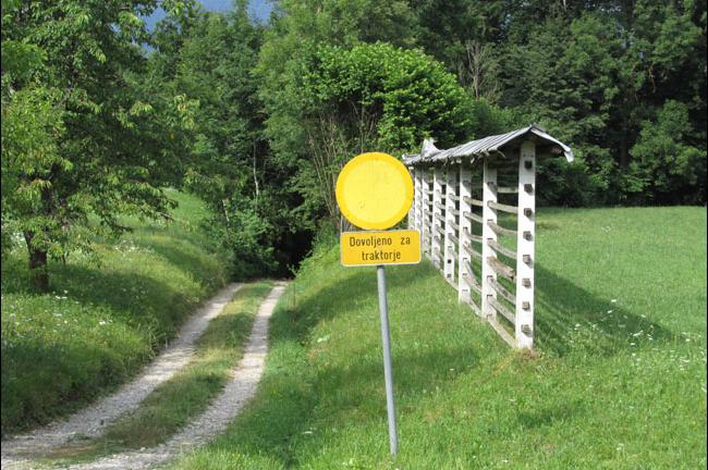 Za kopališčem se pridružimo glavni cesti, po kateri nadaljujemo v smeri Radovljice. Ko prevozimo Kamno Gorico prečkamo glavno cesto in se držimo ozke asfaltne ceste v smeri proti Zgornji Lipnici. V naslednjem križišču nadaljujemo z blagim vzponom naravnost, po makadamski cesti v smeri proti Lipniškem gradu.
