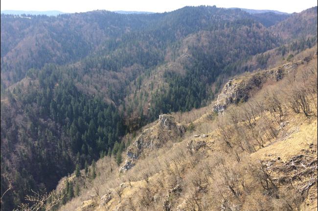 Od kmetije Benko je le še nekaj sto metrov ceste, ki nas pripelje do gozdne jase. Ta del poti je bil vse do letos precej zaraščen, temačen in kar nekako strašljiv. Po zadnjem čiščenju posledic vremenskih ujm je tu precej bolj zračno. Predvsem pa razrito od gozdne mehanizacije. Iz jase vodita dva kolovoza. Levi gre proti Trenku, od tu naprej pa vodi pešpot proti Vrbici. Mi krenemo po desnem, markiranem kolovozu, proti Ustju. Desni kolovoz je precej strm in v zadnjih, precej deževnih poletjih je bil le redko kdaj prevozen. Večji del leta je namreč tako razmočen, da zdrsava, na precej mestih se tudi udira. No, v celoti mi ga še ni uspelo zvoziti, čeprav ne trdim da je nemogoče. Po približno kilometru precej strmega vzpona pridemo do prostranega travnika, na vrhu katerega stoji osamljena domačija. Ustje!