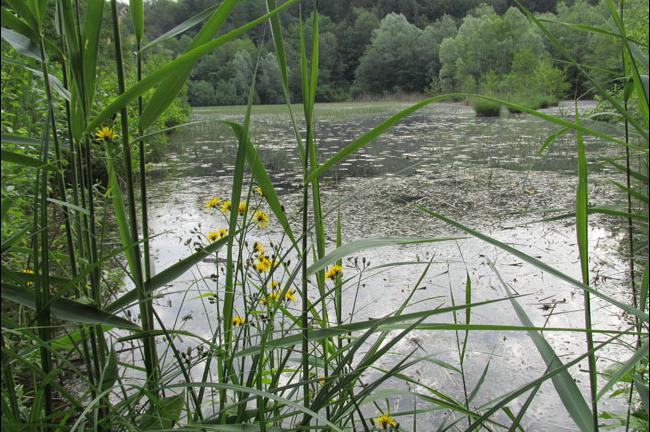 Mimo centra kolesarimo po ozki asfaltni cesti do zadnjih hiš. Od tu nadaljujemo po makadamu in se že po tristo metrih vožnje znajdemo pri Velikem ribniku.