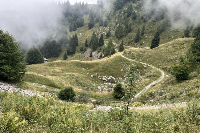 Ko sem pred leti na spletu opazil, kako spektakularne poti vodijo z Monte Grappe v dolino proti Borsu del Grappa in Crespanu sem sklenil, da nekega dne eno od njih tudi sam preizkusim. Letos je ideja končno dozorela in izključno v ta namen sem se odpravil v Benečijo. Pred odhodom sem preučil kar nekaj različnih kombinacij tako vzpona kot spusta. V veliko pomoč mi je bila karta Tabacco 1:25.000, številka 051 Monte Grappa, Bassano – Feltre. Odločil sem se za izjemno atraktivno različico z vzponom po mulatjeri št. 105 iz Covola do koče Ardosetta in spustom po pešpoti št. 153 izpod Monte Meatte v smeri doline San Liberale.