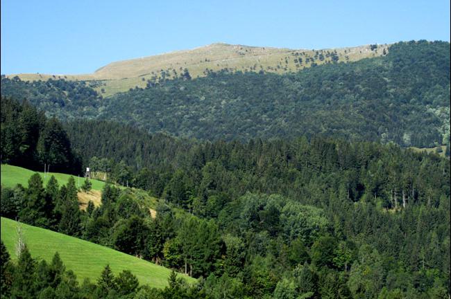 Povedano iskreno, se pred turo s spustom nisem pretirano obremenjeval. V skrajni sili, lahko kolo del poti tudi prenesem, sem si dejal. Na spletu sem našel kar nekaj različic spusta, bodisi proti Petrovemu brdu (ta zaradi odsotnosti železniške povezave ni prišla v poštev), Podbrdu ali Hudajužni. Ko sem prijaznemu planincu, glede na odlično poznavanje okoliških poti je bil domačin, zaupal svoje težave s pomanjkanjem tehničnega znanja, mi je svetoval najvarnejšo pot v dolino. Preko Otavnika in Zakojce v Hudajužno.