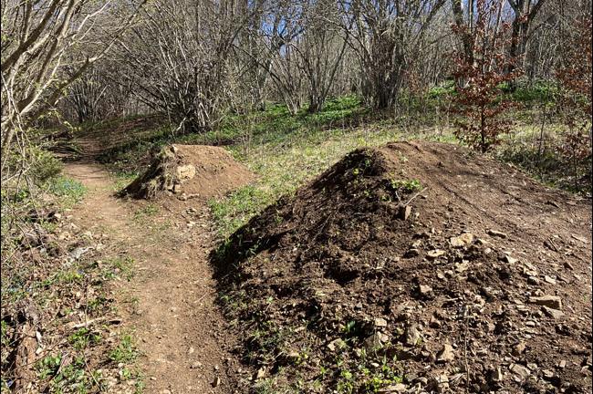 Kar sledi je poltretji kilometer čistih užitkov. Mimo lepo vzdrževanih objektov so za manj vešče kolesarje speljani obvozi. Morda velja biti malce bolj zbran le v zgornjem delu spusta, saj se je na dveh mestih med izogibanjem skakalnici z nekaj nesreče moč zaplesti v kovinsko žico. Da bi bila izkušnja še bolj »prvinska«, steza na par točkah prečka betonirane mitralješke jarke, ostanke Rupnikove linije. Očarljivo! Ko po dobrih dveh kilometrih pridemo do makadamske ceste, jo prečkamo in nadaljujemo naravnost v smeri Gradišča (858 mnv). Od tu proti Cerknici vodi črno obarvana steza »Slivnica Freeride«. Tudi poldrugi kilometer spusta ki sledi, se čisto prehitro konča. Na tem delu spusta je steza sicer bistveno slabše vzdrževana, črna barva pa je po našem mnenju kljub temu malce prestroga. Če pa ima kdo pomisleke in bi želel nadaljevati po lažji stezi, si lahko izbere zeleni »Uršula.com« trail. Ko prečkate malo prej omenjeno makadamsko cesto se držite desne steze, ki vas pripelje do makadamske ceste, po kateri smo se vzpenjali, manj kot dva kilometra od izhodišča..