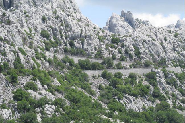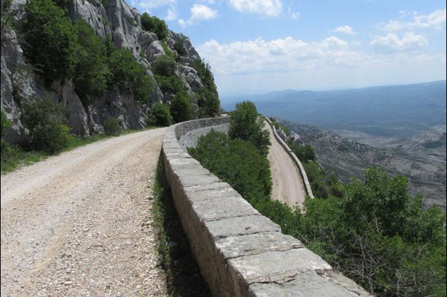 Slikovita, široka makadamska cesta z impozantnimi serpentinami, nam vseskozi ponuja prelepe razglede na stolpičast kraški fenomen, imenovan Tulove grede, katerih najvišji vrh je na 1120 metrih. Mestoma se, ob pogledu v dolino pokaže cerkev Sv. Franja. Promet na tej cesti je razmeroma gost, a ne moteč. Na območju Tulovih gred so v šestdesetih letih prejšnjega stoletja snemali prizore za westerne o Vinnetouju, nemškega pisca Karla Maya. Cesta pri Tulovih gredah doseže višino okoli 850 metrov, od tu naprej se približno 5 kilometrov blago vzpenja, vse do najvišje ležeče točke Mali Alan (1045m). Ob celi poti so spominske plošče padlim hrvaškim vojakom v domovinski vojni, nič kaj prijeten občutek. Predel v bližini Malega Alana je zaminiran, na kar opozarjajo table. Vsekakor ceste ni priporočljivo zapuščati.